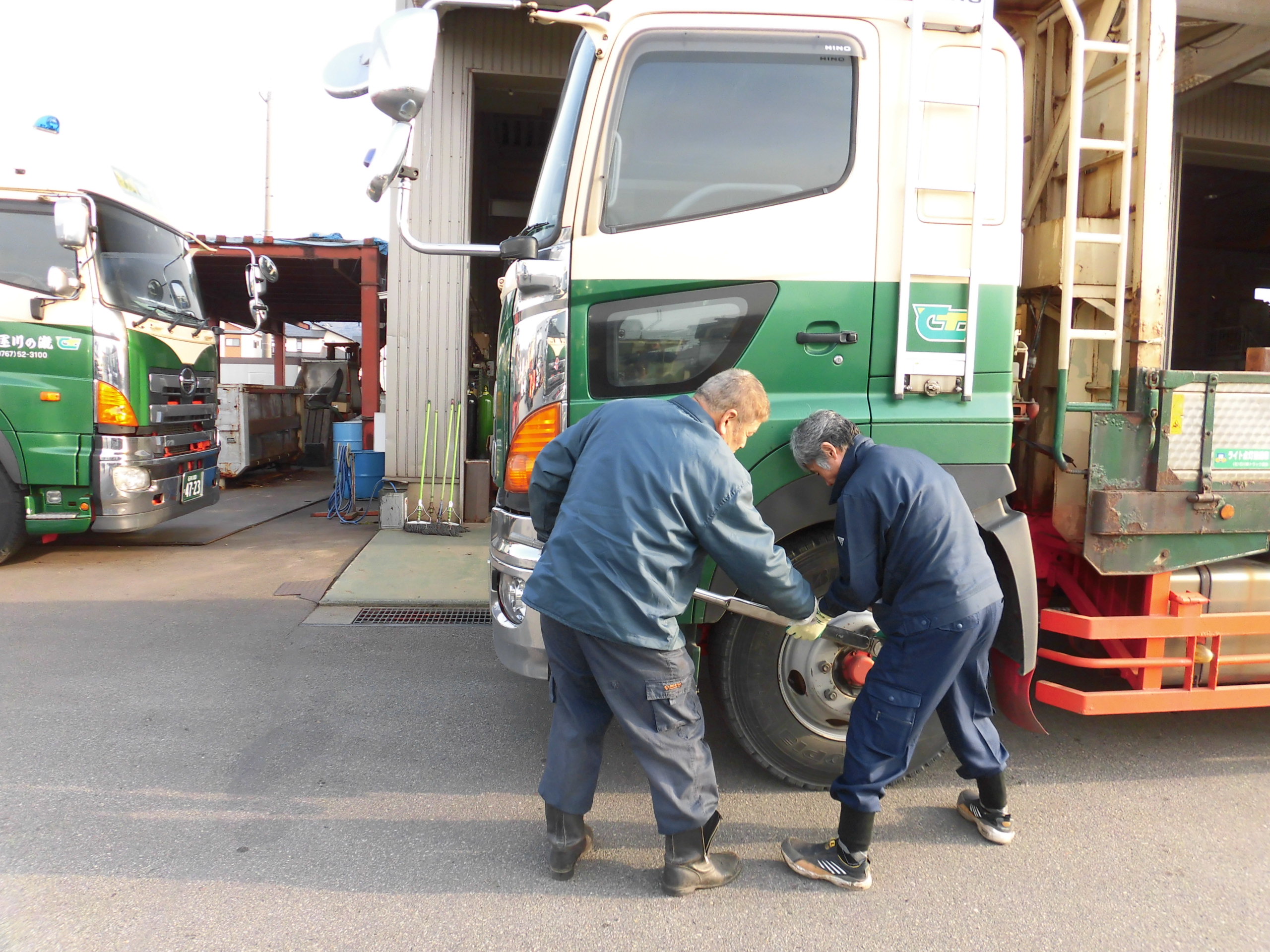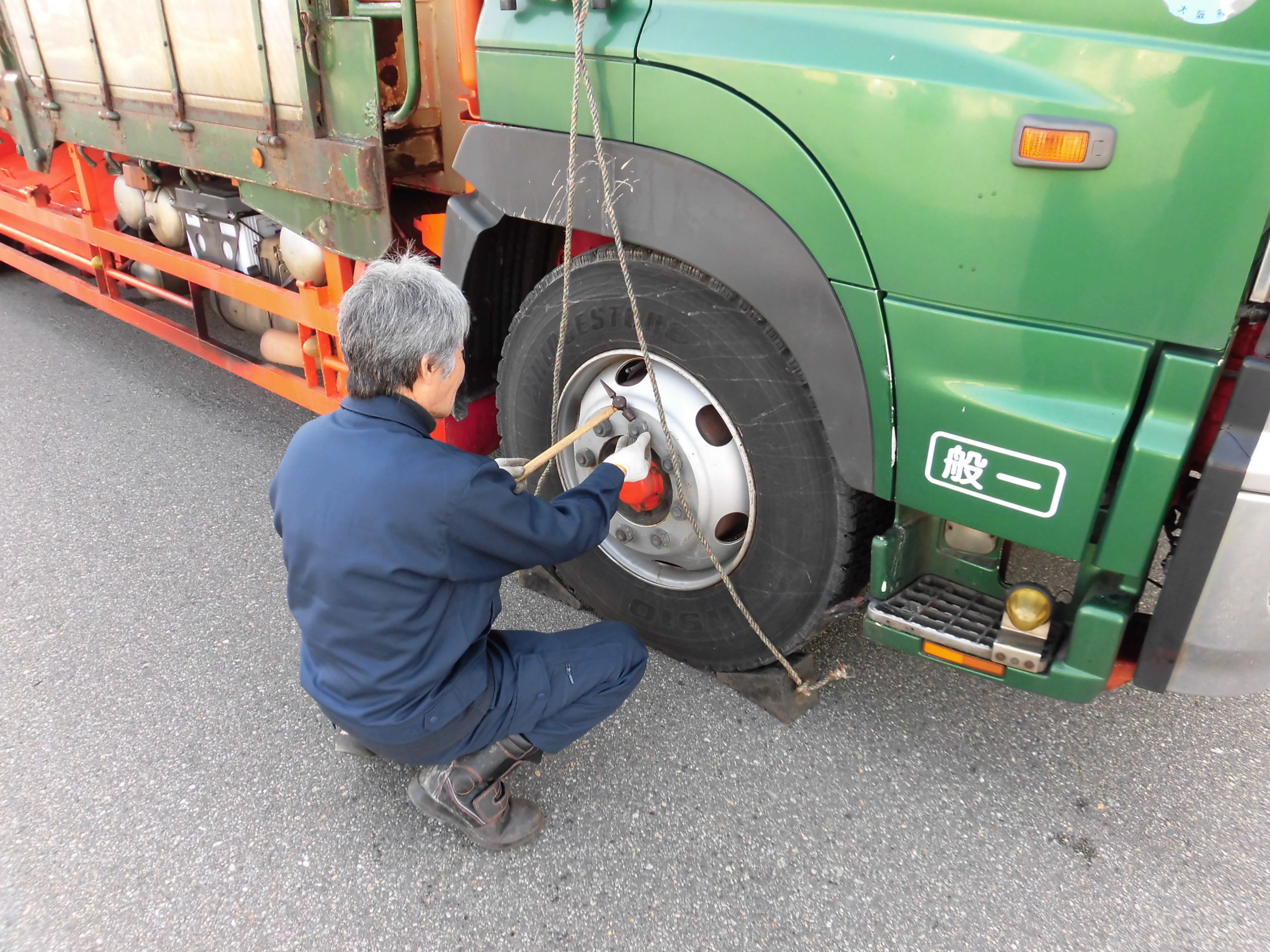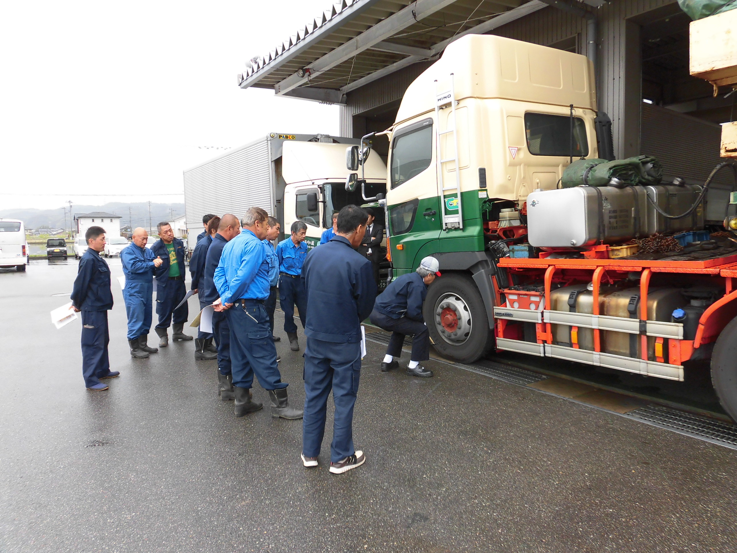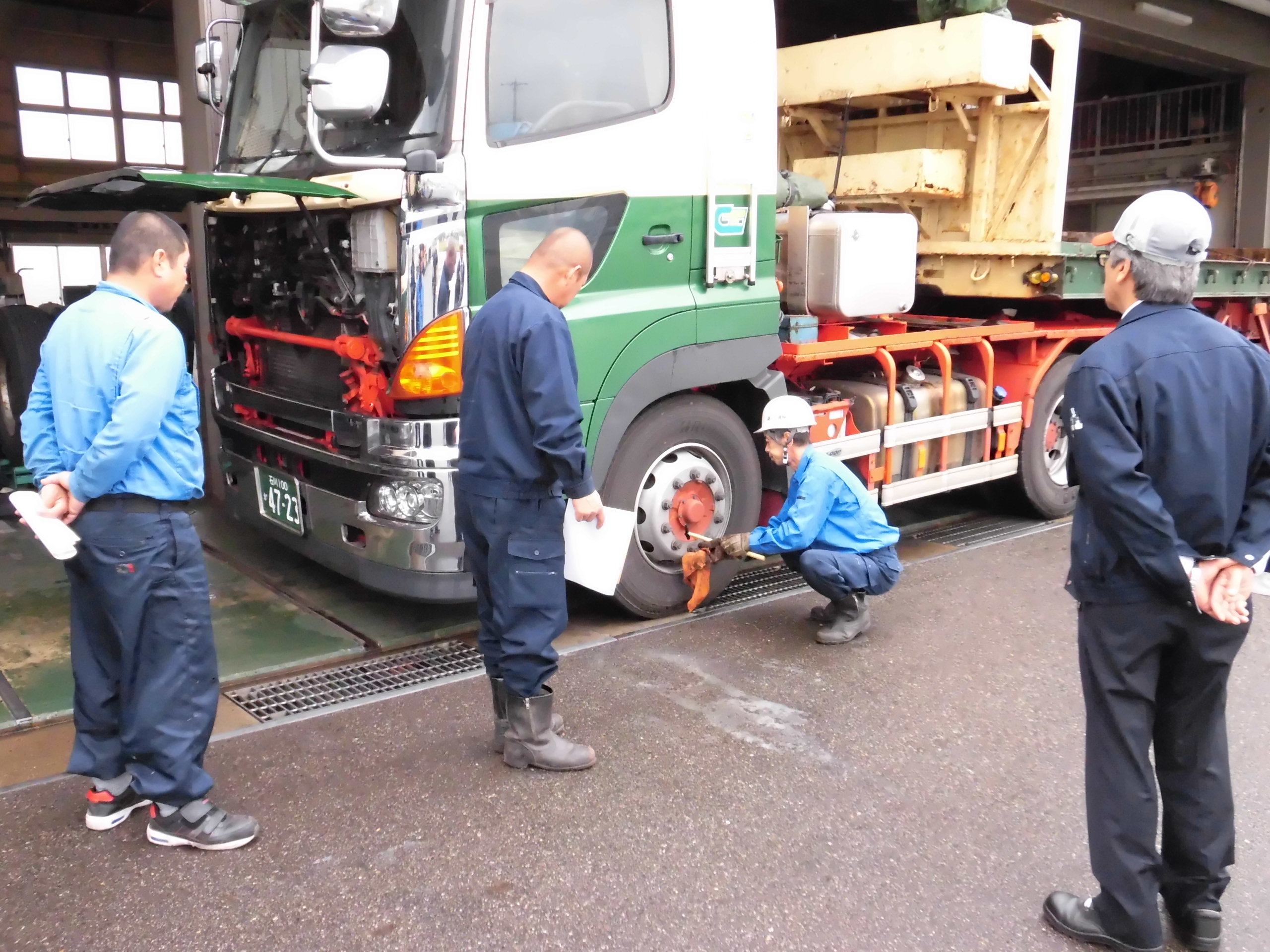日野自動車七尾さんから講師を招き座学・実車を用いて日常点検の重要性を学ぶ |