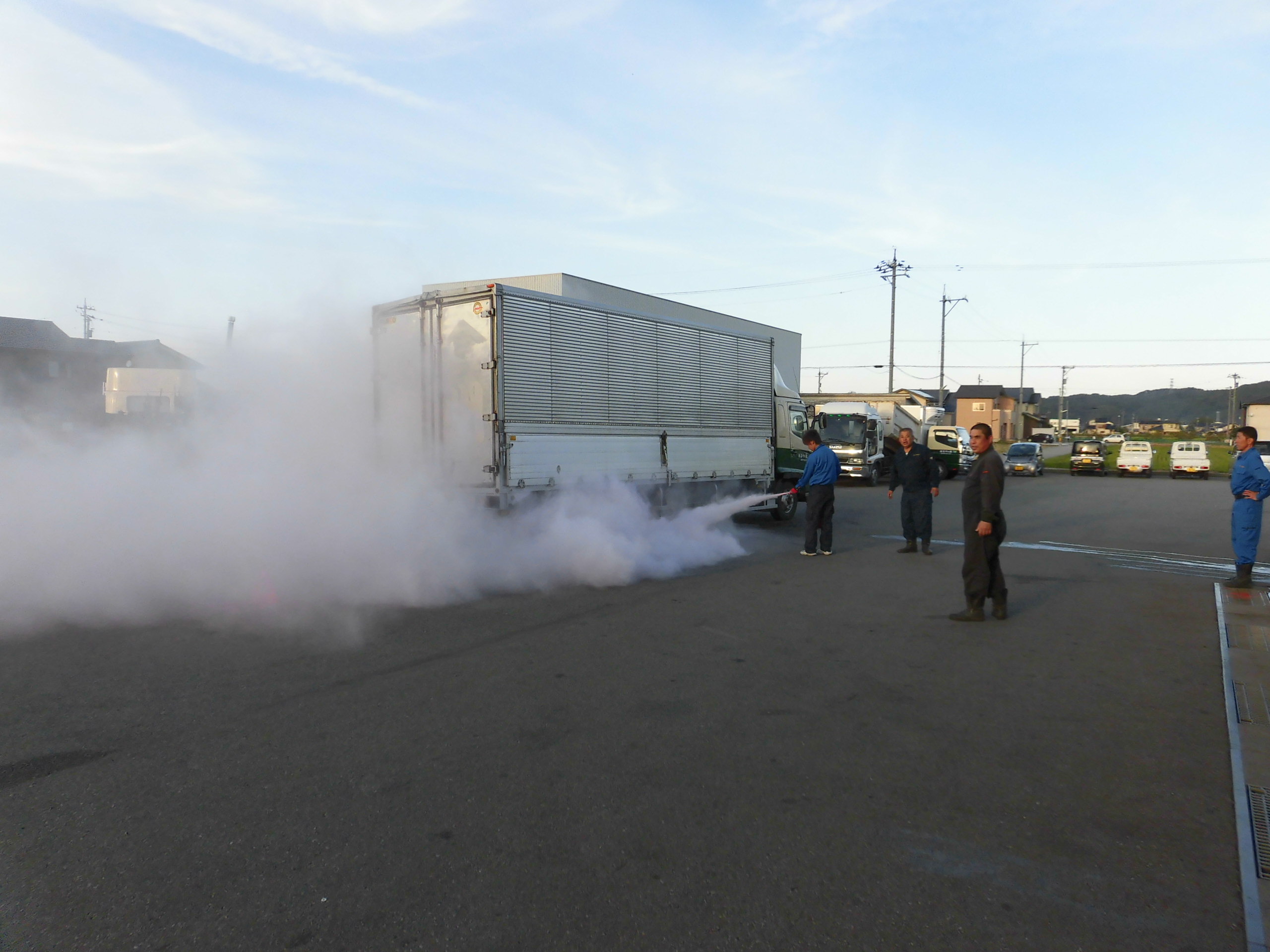 | 点呼風景 | 免許証リーダーの導入 | 消火器取扱講習1 | 消火器取扱講習2 |