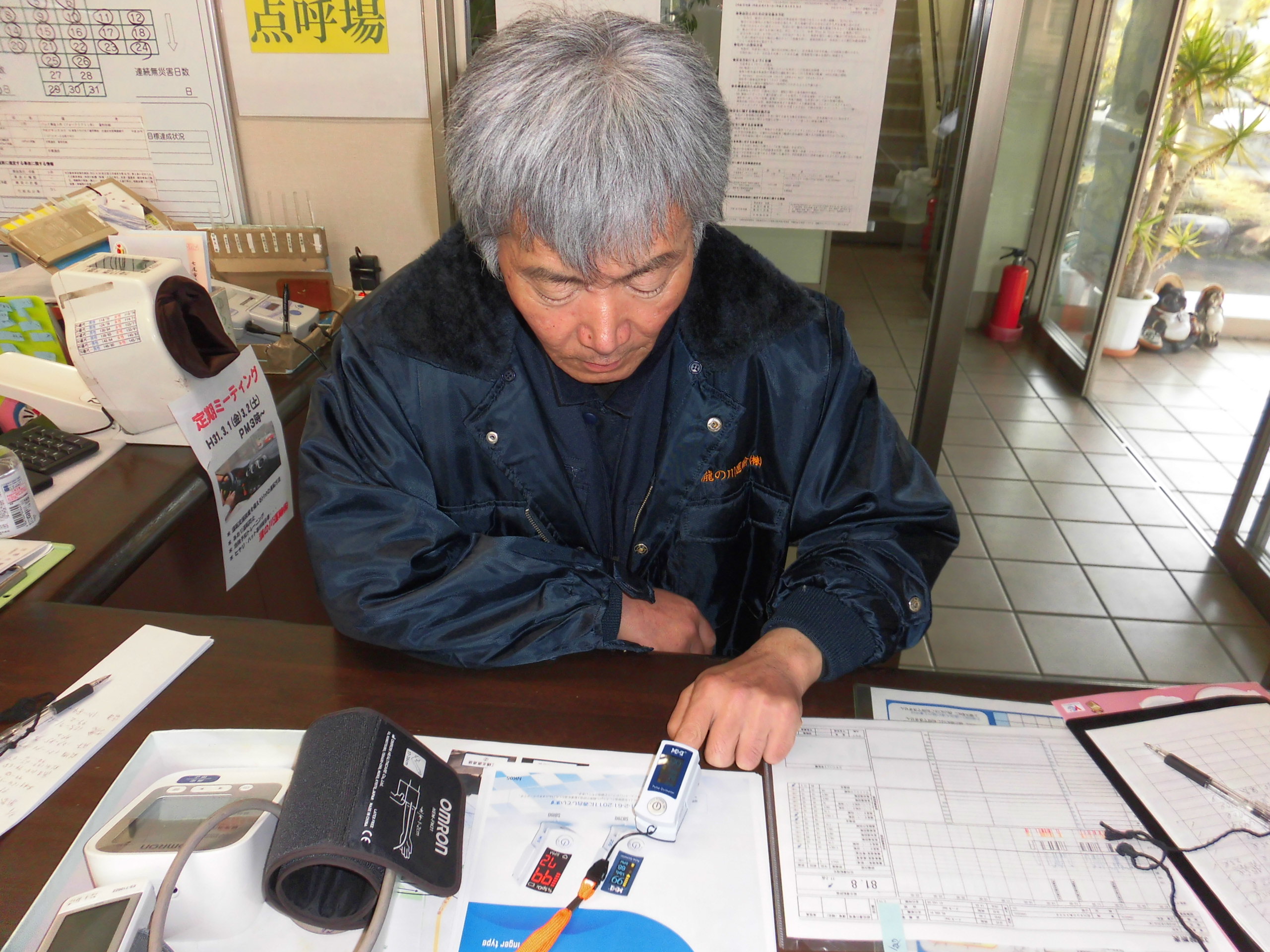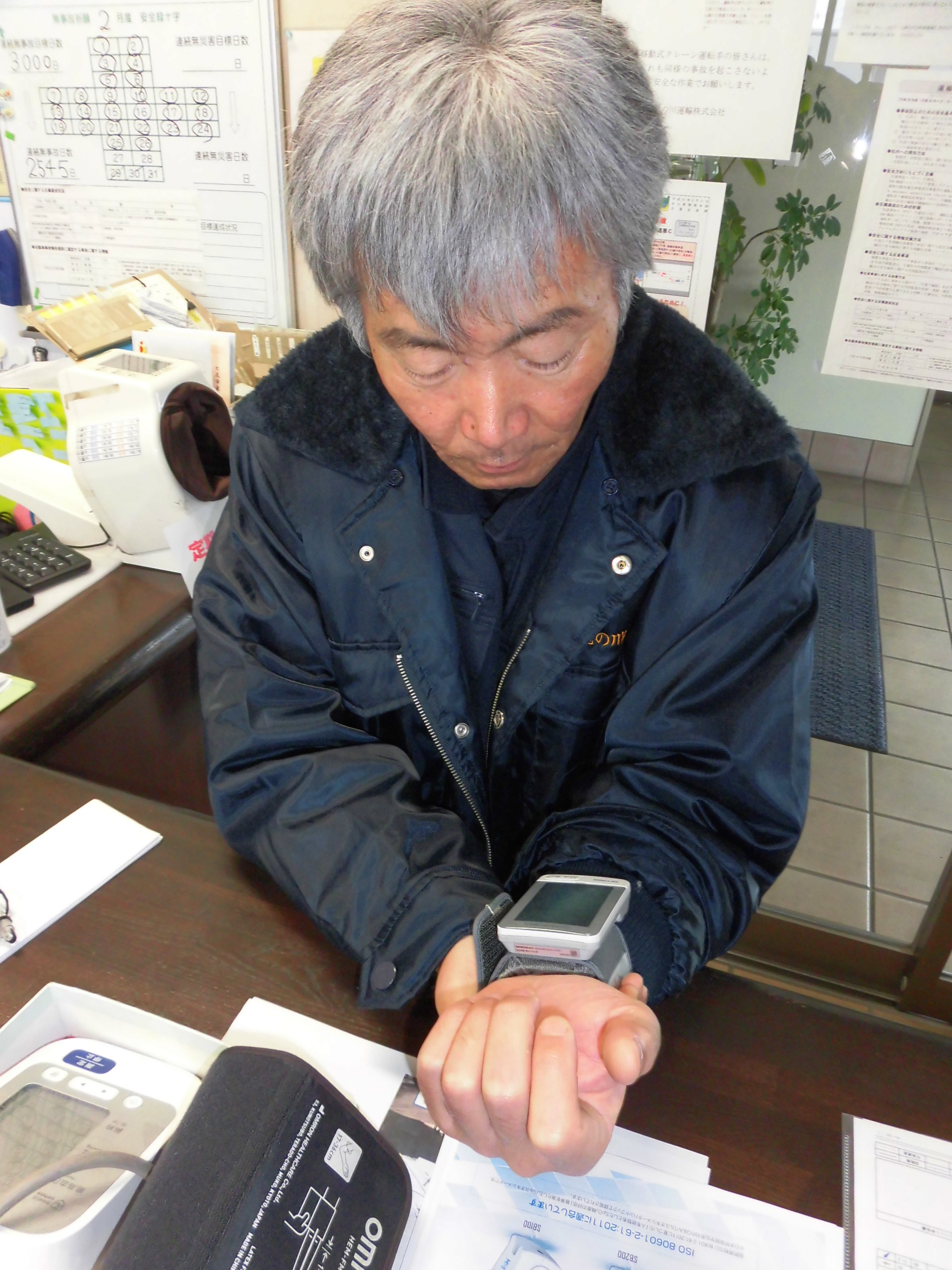 健康が安全な輸送に繋がるという認識で、点呼時には血圧測定をして記録を取り日々の健康状態の把握に努め、年2回の健康診断、産業医をお招きしての健康診断結果の保健指導を開催し、乗務員の適切な労務管理、健康管理を行っています。