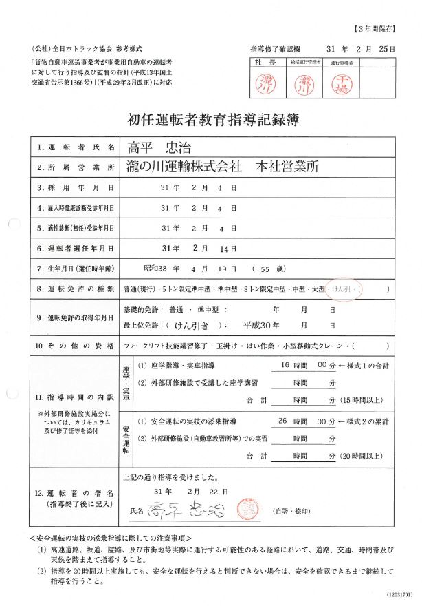 ●初任運転者に対する指導 | |