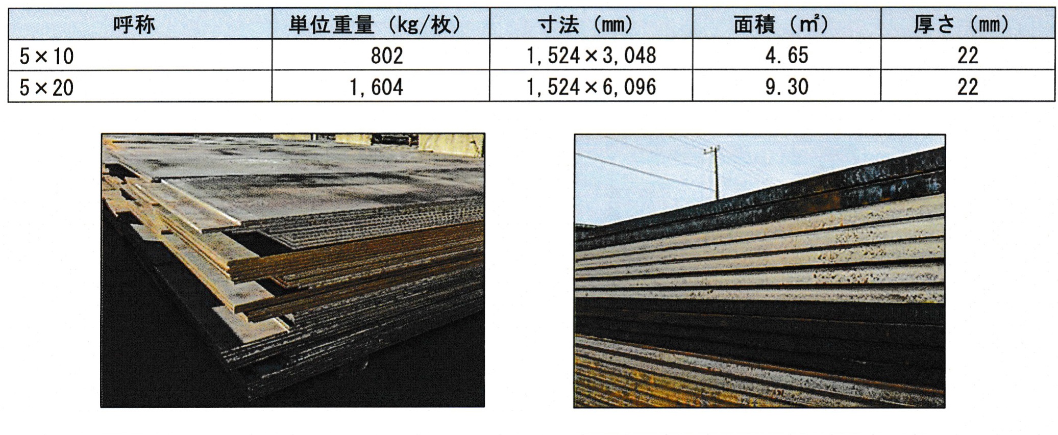 主要定尺寸法の敷鉄板をレンタルし、運搬から敷設、撤去、メンテナンスまでのサービスを提供いたします